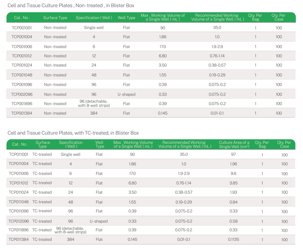 Thông số: Giếng đơn, 4 giếng, 6 giếng, 12 giếng, 24 giếng, 48 giếng, 96 giếng, 96 giếng (có thể tách rời), 384 giếng